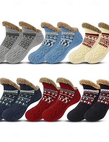 Flauschige Hausschuhsocken für Damen und Herren, dicke, mit Fleece gefütterte Winter-Bodensocken für drinnen, zu Hause oder zum Schlafen, warme, kuschelige kurze Crew-Socken