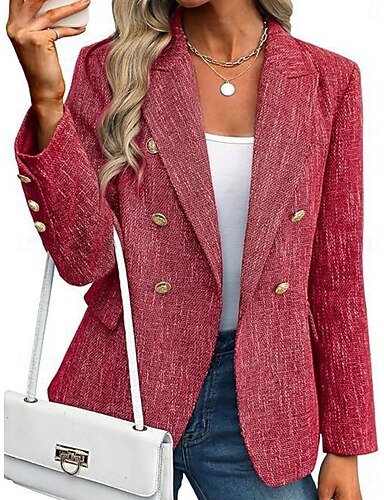 Damen Blazer Bequem Atmungsaktiv Tasche Mode Lässig Karomuster Büro Straße Lässig Alltagskleidung Doppelreihig Regulär Umlegekragen Normale Passform Langarm Oberbekleidung Hellblau Schwarz Rosa