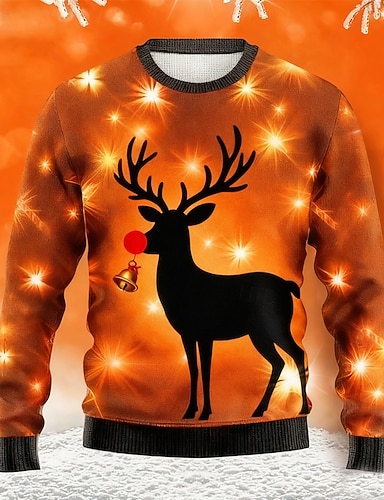 Weihnachten Herren Jeder Hässlicher Weihnachtspullover Pullover Strickware Rundhalsausschnitt Lässig Urlaub Täglich Festival 3D-Druck warm halten Langarm Frühling Herbst Winter Blau Purpur Orange
