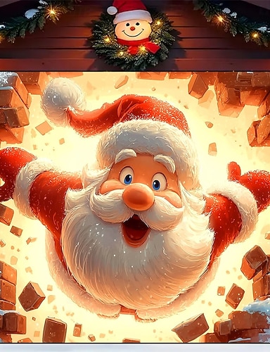 Weihnachts-Garagentorabdeckung für den Außenbereich, Weihnachtsmann, 3D-Effekt mit gebrochener Wand, großer Wandteppich, Hintergrund, Weihnachtsfeier, Wanddekoration für Garagentor im Freien,