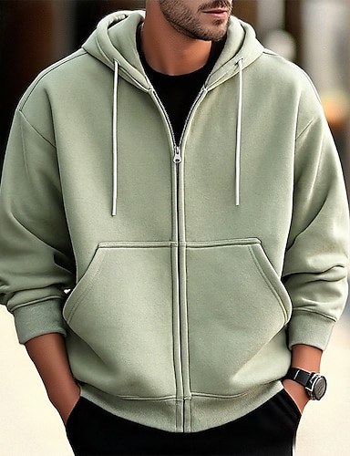 Herren Kapuzensweatshirt Vollreißverschluss-Kapuzensweatshirt Aprikose Grau 2 # Schwarz Weiß Wein Mit Kapuze Einfach Reißverschluss Tasche Sport & Outdoor Täglich Ferien Polyester Streetwear Basic