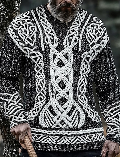 Herren Wikinger Pullover Strickware Rundhalsausschnitt Retro Vintage Lässig Urlaub Täglich 3D-Druck warm halten Langarm Frühling Herbst Winter Schwarz
