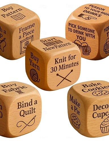 Quilter-Würfel, handgefertigter Quilt-Entscheidungswürfel aus Holz mit 6 eingravierten Nähaufgaben, lustiges Geschenk für Quilt-, Strick-, Back-, Trink-, Stickaufgaben, kreatives Geschenk für Quilter