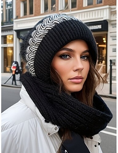 Damen-Winter-Strickmütze-Schal-Set mit Bommel, mit Fleece gefütterte 2-in-1-Mütze und Halswärmer, kuschelig warmes Outdoor-Accessoire für kaltes Wetter und Weihnachtsgeschenke