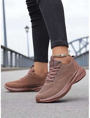 Kaffeefarbene Flyknit-Schnürsneaker für Damen mit atmungsaktivem Mesh-Obermaterial und gepolsterter Sohle, leichte Freizeit-Wanderschuhe zum Laufen und Reisen &Alltagskleidung
