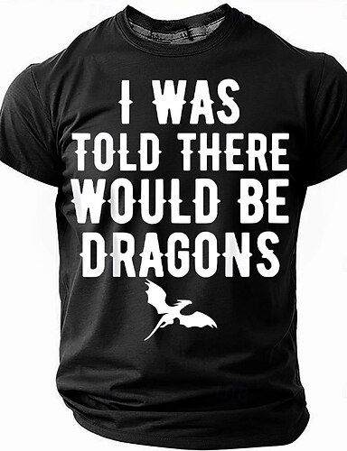 lustiges Herren-T-Shirt mit Rundhalsausschnitt und kurzen Ärmeln „Mir wurde gesagt, dass es Drachen geben würde“, Fantasy-Humor-Grafik-T-Shirt für Drachenliebhaber