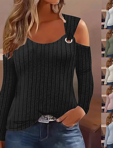 Damen Bluse Einfarbig Stilvoll Lässig Langarm Träger Normale Oberteile Täglich Patchwork Schwarz Rosa Armeegrün Blau Khaki Frühling Herbst Winter