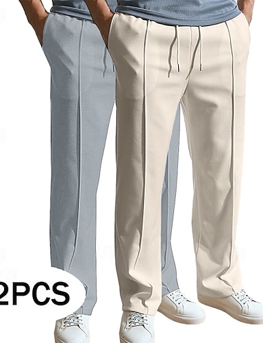 Herren Jogginghose Hose Baggy-Hosen Gerade geschnittene Sweatpants Faltenhose Kordelzug Elastischer Bund Einfach Komfort Atmungsaktiv Volle Länge Outdoor Täglich Ausgehen Mode Ethno-Stil Weiß + Khaki