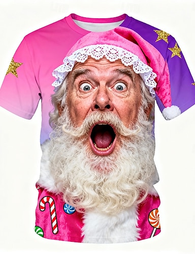 Herren T Shirt Weihnachtsmann Lustig Rundhalsausschnitt Bekleidung 3D-Druck Outdoor Weihnachtsgeschenke Party Kurzarm Cool Täglich