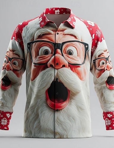 Weihnachten Herren Weihnachtsmann 3D Zeichentrick Menschliches Gesicht Hemd Knopfhemd Langarm Lustig Outdoor Ferien Frühling Herbst Umlegekragen 3D-Druck Hemden mit Kragen Rot 1 Schwarz Rote