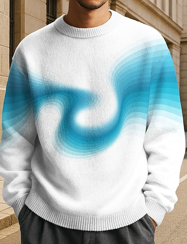 Herren Farbblock Abstrakt Pullover Strickware Rundhalsausschnitt Lässig Urlaub Täglich 3D-Druck Stricken warm halten Langarm Frühling Herbst Winter Schwarz Blau Grün