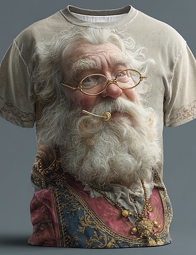 Weihnachten Herren Weihnachtsmann T Shirt Kurzarm T-Shirt 3D-Druck Rundhalsausschnitt Hemd Täglich Designer Künstlerisch Urlaub Party Straße Khaki Ganzjahres Bekleidung S M L XL XXL XXXL