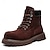 Braune Outdoor-Trailstiefel aus Kunstleder für Herren mit strapazierfähiger Gummisohle und handgenähten Details, bequeme Freizeit-Arbeitsstiefel zum Wandern und für den Alltag