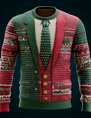 Hässlicher Weihnachtspullover Herren Weihnachtskostüm Pullover Strickware Rundhalsausschnitt Lässig Urlaub Täglich Festival 3D-Druck warm halten Langarm Frühling Herbst Winter Rote