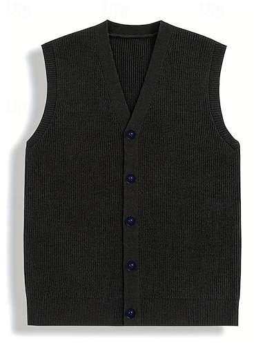 Herren Pullunder Kleid Pullover Weste Strickware Strickjacke Weste Gerippt Stricken Normale Oberteile Knöpfe Einfach V Ausschnitt Mode Klassisch Urlaub Alltagskleidung Bekleidung Herbst Winter Schwarz