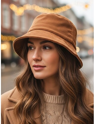 Damen-Cord-Fischerhut, gemütliche Winter-Fischermütze für Weihnachts-Feiertags-Outfits, warmer Hut im Retro-Stil für Spaziergänge im Freien und festliche Zusammenkünfte