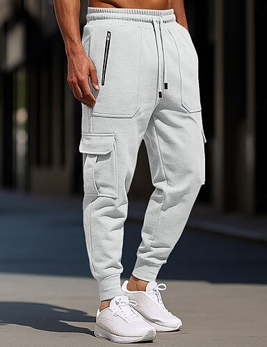 Herren Cargo-Jogginghose Jogginghose Fleecehose Hose Kordelzug Reißverschluss Elastischer Bund Einfarbig Einfach Winddicht Außenbereich Volle Länge Lässig Täglich Urlaub Mode Schwarz Weiß