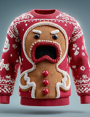 Hässlicher Weihnachtspullover Herren Lebkuchenmänner Pullover Strickware Rundhalsausschnitt Lässig Urlaub Täglich Festival 3D-Druck warm halten Langarm Frühling Herbst Winter Weiß Rote Purpur