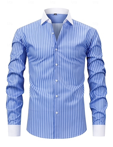 Herren Hemd Kleidhemd Bügelfreies Hemd Gestreiftes Hemd Knopfhemd Vertikale Streifen Hochzeit Outdoor Hellblau Schwarz Weiß Rosa Langarm Kragen Sommer Frühling Bekleidung Farbblock