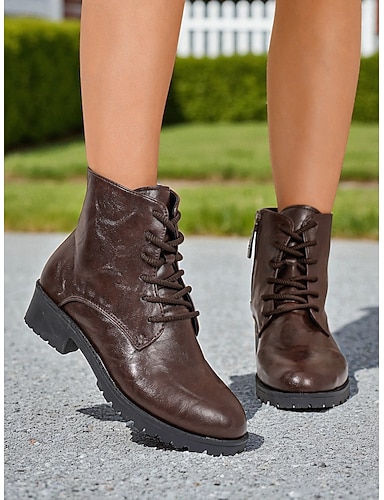 Braune Combat-Stiefeletten zum Schnüren für Damen, Freizeitschuhe aus Kunstleder für die Arbeit, zum Spazierengehen im Alltag und für Herbstoutfits