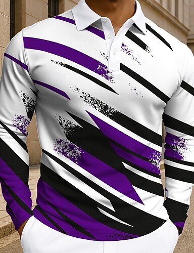 Herren Geometrisch Linie Polo Langarm Polo-Shirts Revers Lässig Athleisure Alltagskleidung 3D-Druck Knöpfe Frühling Herbst Winter Rote Blau Purpur