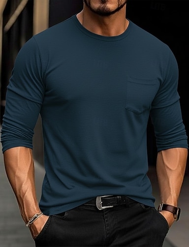 Herren T-Shirt Langarm V Ausschnitt Sommer Frühling Herbst Einfarbig Einfach Modern Lässig Bequem 2 in 1 Basic Outdoor Heim Straße Blau Grün Purpur Top T-Shirt für Herren