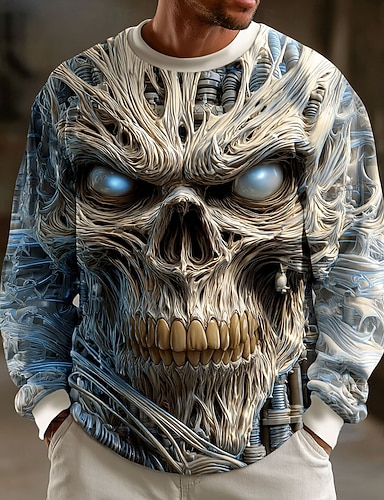 Halloween Herren Schädel 3D Sensenmann Pullover Punk Party Rundhalsausschnitt Urlaub Blau Himmelblau Rundhalsausschnitt 3D Ganzjahres Designer