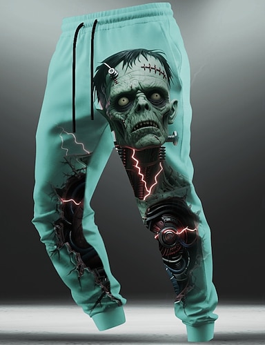 Halloween Herren Gothic-Horror Zombies Jogginghose Hose Mittlere Taille Kordelzug Elastischer Bund Dunkler Gothic-Stil Outdoor Ferien Sportliche Jogginghose mit Taschen Frühling Herbst 3D-Druck Blau