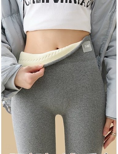 Damen Fleecehose Leggings Mode Basic Lässig Volle Länge Hohe Taille Einfach Hoher Schnitt Bequem Weich Dehnbar Heim Täglich Hellgrau Dunkelgrau Schwarz Beige Sommer Frühling Herbst Winter Schmale