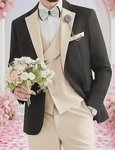 Herren Hochzeit Party Hochzeitsanzüge Gekerbtes Revers Schwarz Formell Einfarbig Schmale Passform 3-teilig