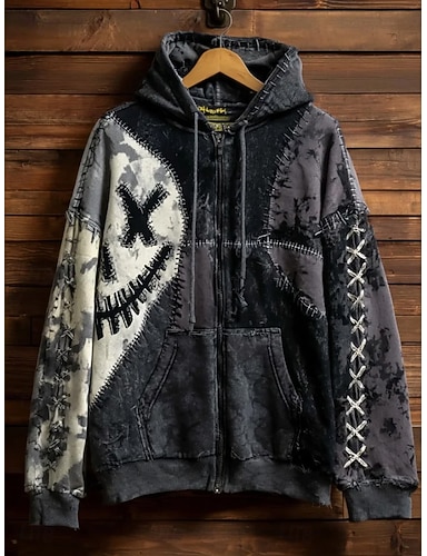Damen Hoodies mit Reißverschluss Grafik Schädel Kürbis Punk Mode Retro Langarm Mit Kapuze Normale Oberteile Straße Alltagskleidung Lässig Patchwork Reißverschluss Tasche Schwarz Herbst Winter