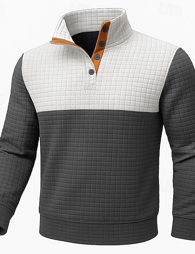 Herren Sweatshirt Waffel-Sweatshirt Pullover Kapuzensweatshirt Pullover Kapuzenpullover mit Knöpfen Marineblau Khaki Beige Grau Stehkragen Einfach Patchwork Farbblock Sport & Outdoor Lässig Täglich