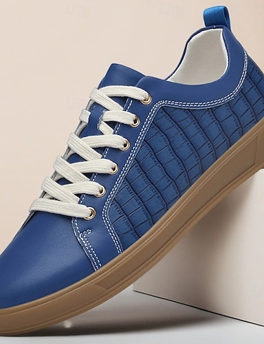 Herren Freizeitschuhe Krokodilmuster Spaziergang Lässig Leder Spaltleder Bequem Rutschfest Atmungsaktiv Schnürung Schwarz Blau Orange