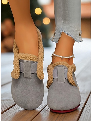 Weite Damen-Mokassins aus Wildlederimitat mit Plüschfutter, bequeme, warme Slipper für den Winter &lässige Outfits