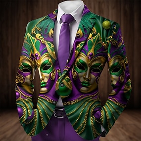 Karnival Herren Maske Blazerjacke Mantel Mode Bequem Atmungsaktiv Künstlerisch Lässig Party-Abendmode Lässig Festival Tasche 3D-Druck Knöpfe Ganzjahres Fallendes Revers Langarm Purpur Grün