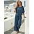 Damen Freizeitkleidung Onesie Mode Sexy Lässig Grafik Einfarbig Schnürung Rückenfrei Hose Urlaub Heim Straße Langarm U-Ausschnitt Königsblau Sommer Frühling Figurbetonter Schnitt