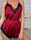 Damen Schlafanzug Onesie Sexy Lässig Weich Blumen Spitze Rückenfrei Täglich Heim Bett Ärmellos Neckholder Schwarz Weiß Gelb Rosa Wein Sommer Schmale Passform