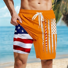 Tag der Unabhängigkeit Herren 250. Jahrestag des Unabhängigkeitstages der USA am 4. Juli Patriotisch USA Flagge Gefütterte Shorts 2 in 1 Badeshorts Badehosen Mittlere Taille Ferien Seitentaschen Mit