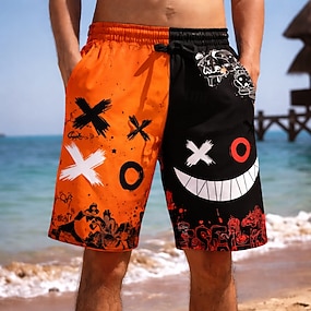 Herren 3D Zeichentrick Lächelndes Gesicht Badehosen Badeshorts Boardshorts Mittlere Taille Lustig Outdoor Urlaub Alltagskleidung Seitentaschen Netzfutter Elastischer Kordelzug in der Taille Designer