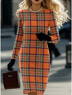 Damen Minikleid T-Shirt-Kleid Lässig Halbformelle Kleider Täglich Büro Normale Passform Geometrisch Hahnentrittmuster Langarm Rundhalsausschnitt Blau Dunkel Braun Rosa Rote Frühling Herbst Winter