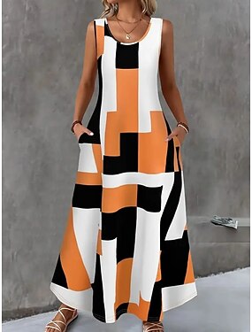 Damen Maxikleid Lässiges Kleid Sommerkleid Shift-Kleid Modern Urlaub Party Lässig Reguläre Passform Farbblock Abstrakt Ärmellos Rundhalsausschnitt Gelb Blau Lila Orange