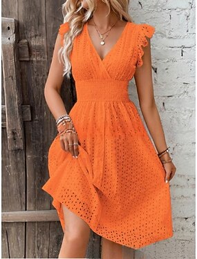 Damen Minikleid Freizeitkleid Mode Modern elegante kleider Kappe Täglich Hochzeit Date Normale Passform Blumen Stickerei Ärmellos V Ausschnitt Schwarz Weiß Orange Sommer