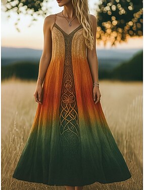 Damen Maxi-Kleid Boho Sommerkleid A-Linie Kleid Unterkleid Urlaub Lässig Strand Reguläre Passform Ombre Grafik Ethnisch Ärmellos V-Ausschnitt Spaghetti-Träger Blau Lila Orange Grün Sommer Frühling