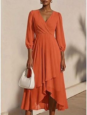 Damen Midikleid Chiffonkleid Freizeitkleid Schwingkleid Elegant Mode Modern Outdoor Urlaub Ausgehen Normale Passform Einfach Langarm V Ausschnitt Blau Schwarz Weiß Burgunderrot Sommer Frühling