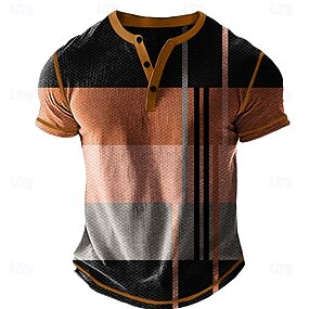 Herren Grafik Farbblock Geometrie Henley Hemd Kurzarm 3D-Druck Mode Designer Bequem Täglich Outdoor Sommer Orange Braun Henley Henley T-Shirt