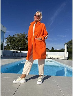 Damen Mantel Warm Knöpfe Lässig Alltagskleidung Revers Normale Passform Langarm Oberbekleidung Weiß Rote Orange Herbst Winter