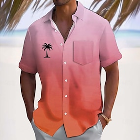 Herren Kokospalme Farbverlauf Tropische Pflanzen Sommer Hawaiihemd Knopfhemd Alohahemd Kurzarm Hawaiianisch Lässig Urlaub Sommer Frühling Umlegekragen 3D-Druck Hemden mit Kragen Eine Tasche vorne
