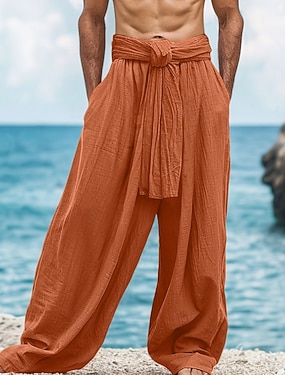 Herren Leinenhosen Hose Sommerhose Strandhose Kordelzug Tasche Elastischer Bund Einfach Komfort Atmungsaktiv Urlaub Täglich Ferien Hawaiianisch Boho Melonen-Rot Hellkaki