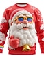 Weihnachten Herren Weihnachtsmann Pullover Cool Party 3D Langarm Rundhalsausschnitt Urlaub Party Geschenk Weiß Rote Grün Rundhalsausschnitt 3D Ganzjahres Designer S M L XL XXL XXXL