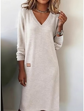 Damen Midikleid Shiftkleid Freizeitkleid Mode Basic Täglich Urlaub Ausgehen Normale Passform Einfach Langarm V Ausschnitt Weiß Wein Kamel Frühling Herbst